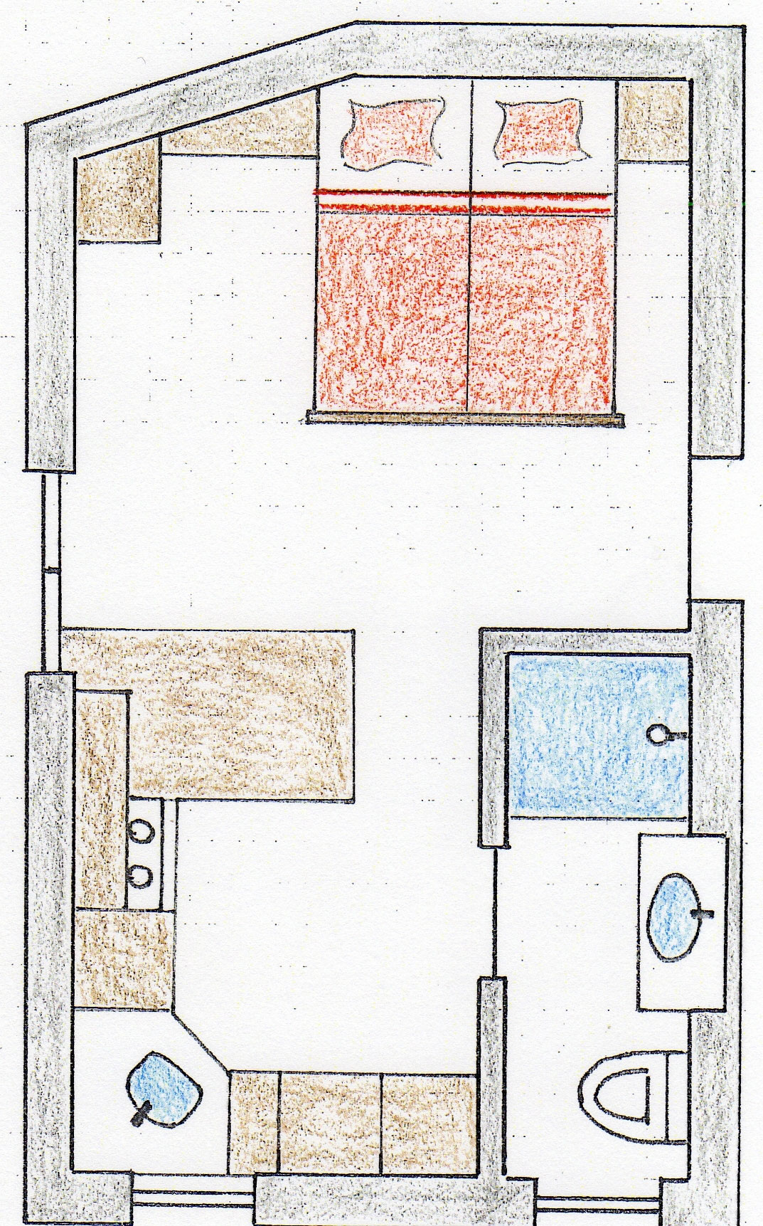 Studio mit großzügig eingerichteter Küche und Dampfdusche auf einer Fläche von 28 m2. Filter-Kaffeemaschine, Nespresso-Kapselmaschine.